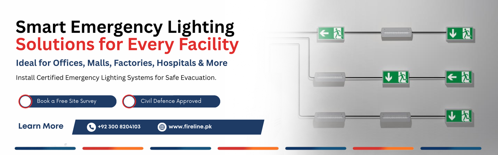 At Fire Line, we provide reliable and fully compliant Emergency Lighting Systems to ensure safety during power outages and emergencies. Whether it’s a commercial building, industrial facility, or residential space, our systems help guide occupants safely to exits during critical situations.